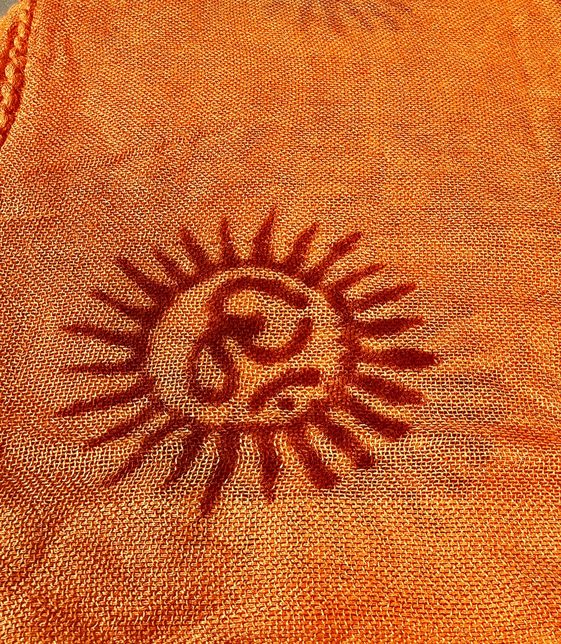 Ce foulard aux symboles et divinités mythiques indiennes est inspirée de la ville de Bénarès. Il se porte autour de votre cou, dans vos cheveux en bandeau ou pour nouer votre queue de cheval. Il pourra aussi être noué à votre sac et donne ainsi un côté ethnique et tendance.
