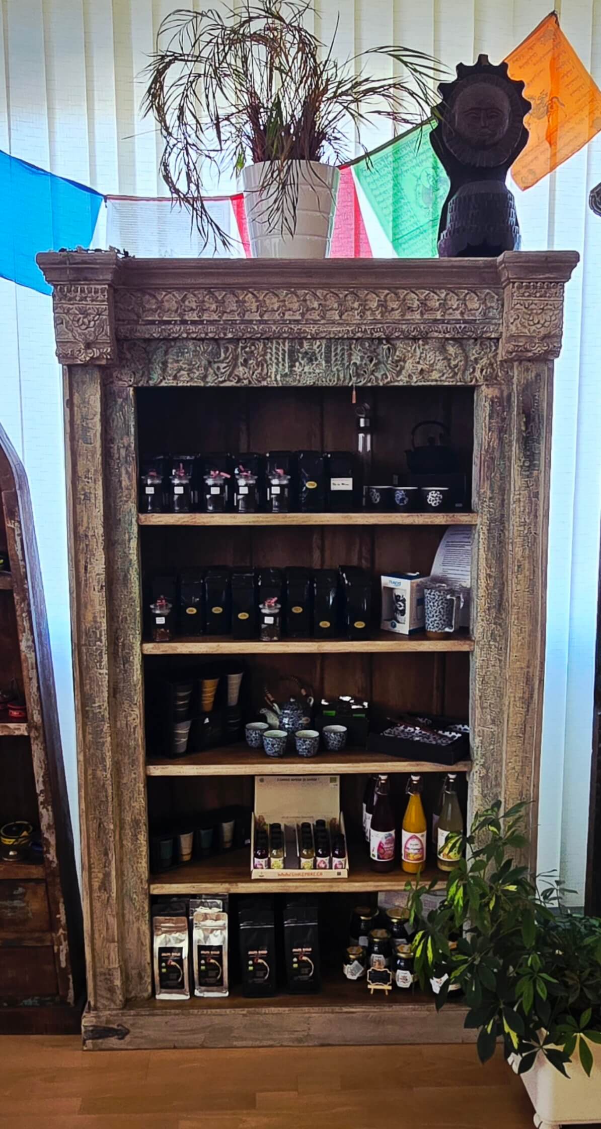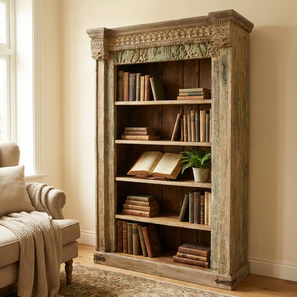 Bibliothèque Indienne Authentique – Bois Massif & Porte Ancienne Sculptée
