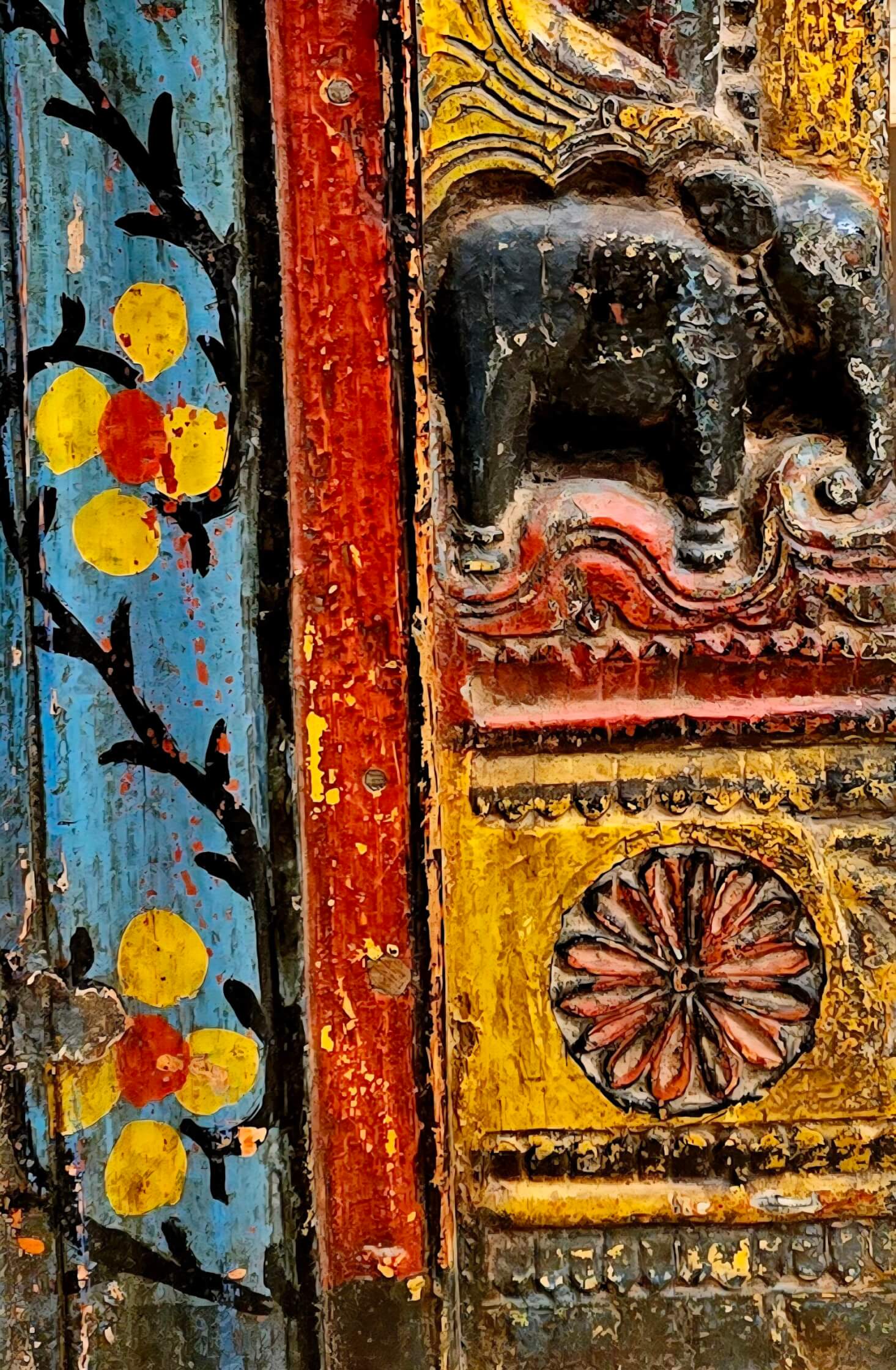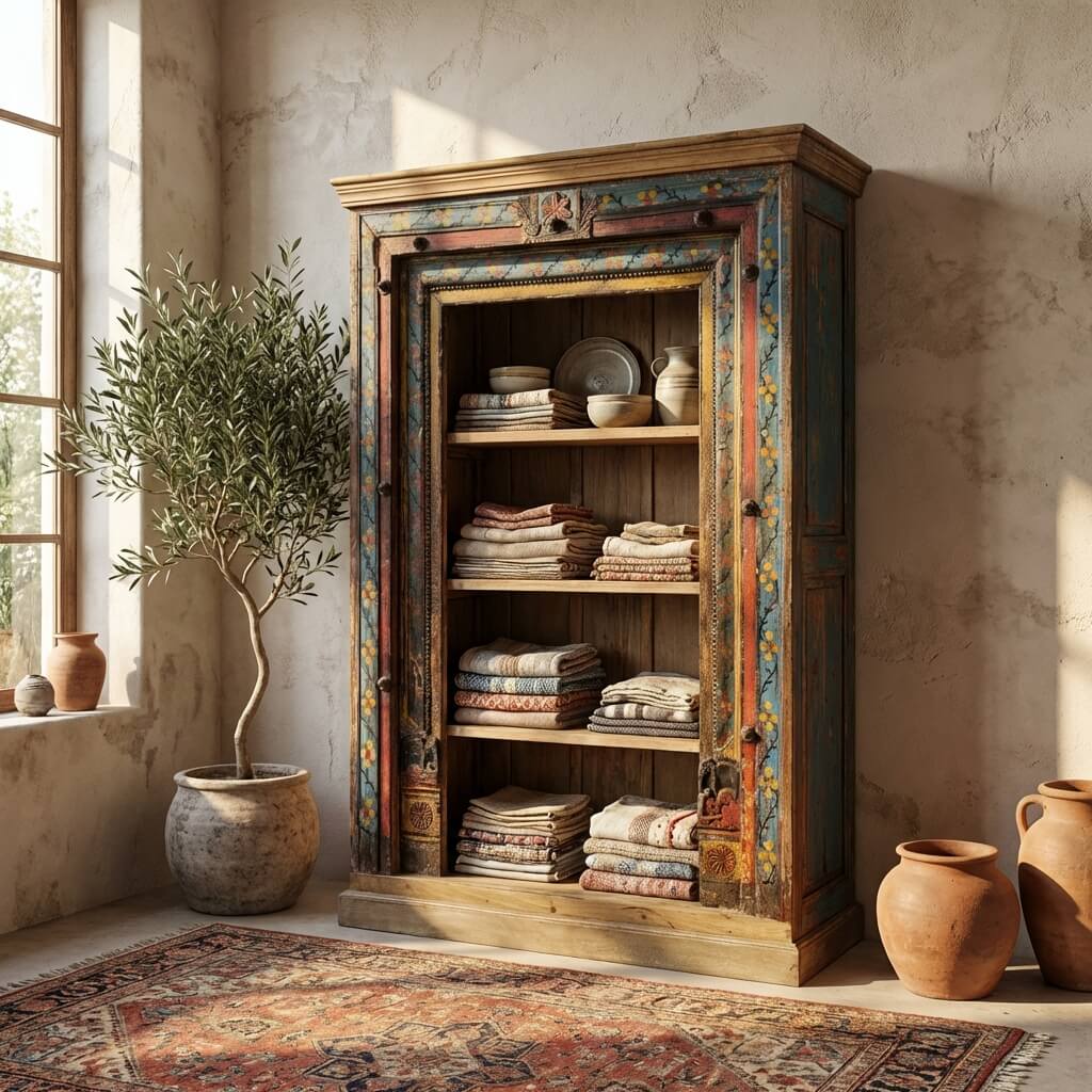 Bibliothèque Indienne Peinte – Porte Ancienne Colorée & Bois Massif