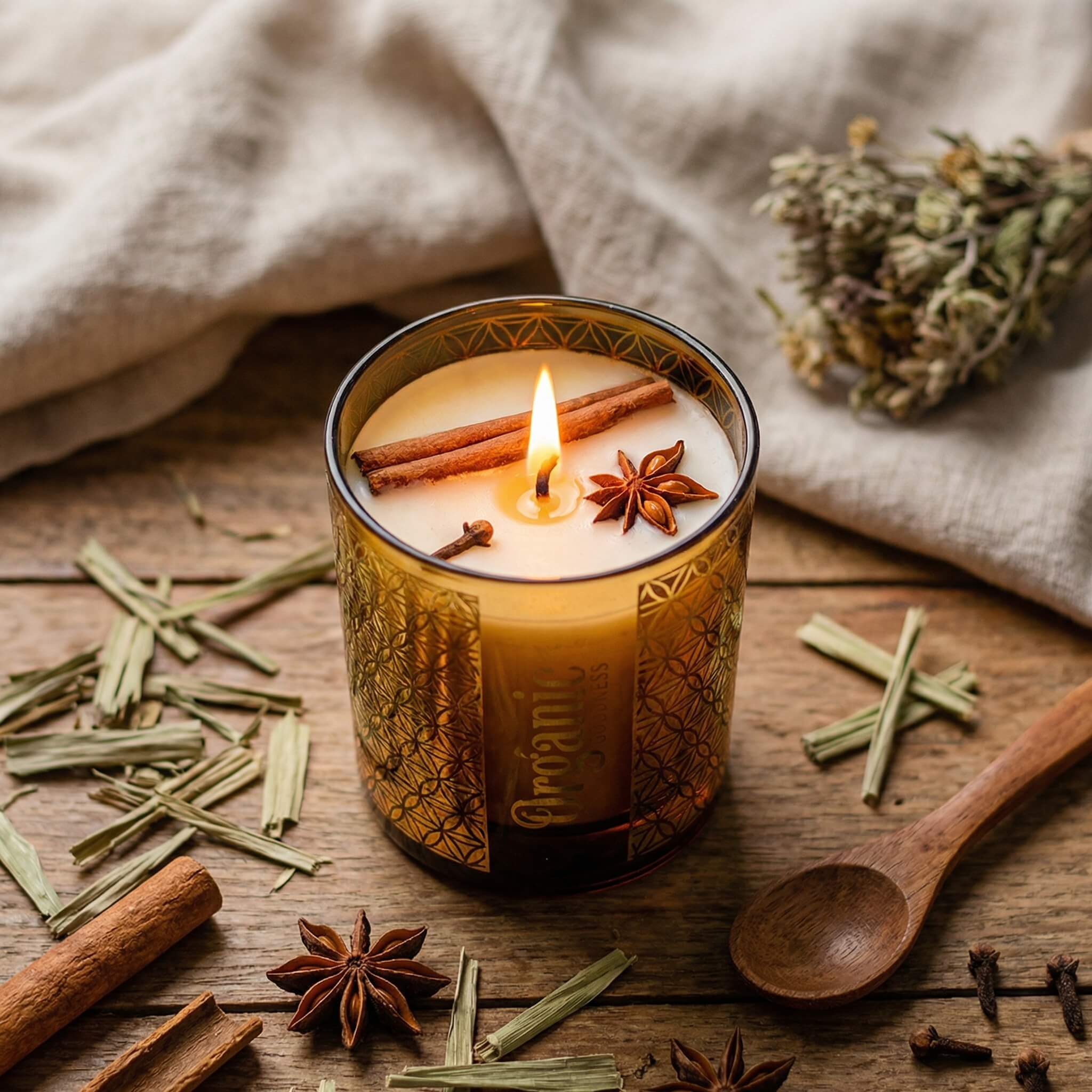 La citronnelle est réputée pour son parfum frais et citronné qui éloigne les moustiques tout en créant une atmosphère vivifiante. Associée aux épices, cette bougie diffuse une senteur chaude et enveloppante, parfaite pour dynamiser l’ambiance et stimuler les sens.