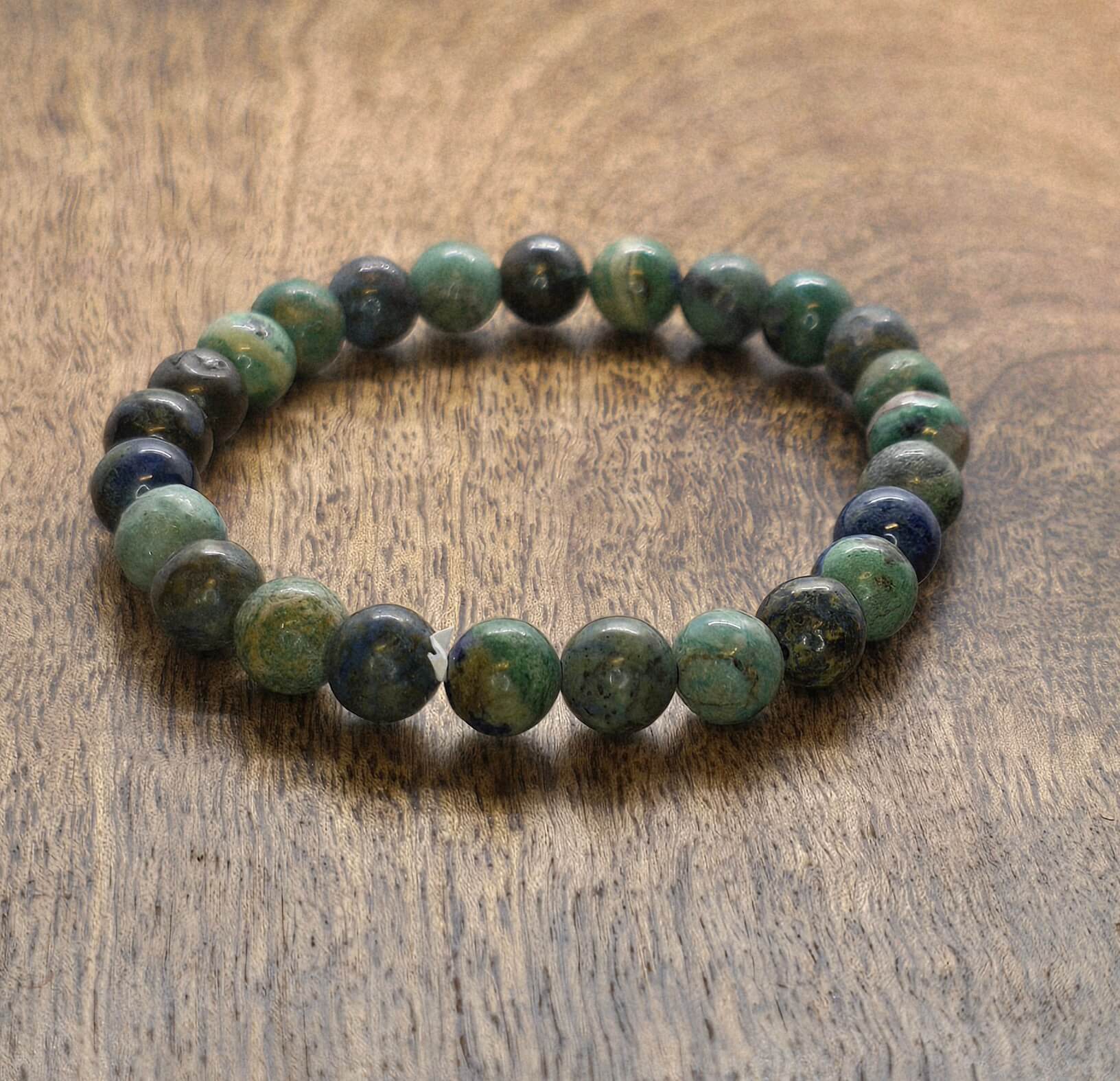 Bracelet lithothérapie est constitué d’envivon 22 perles de pierre de 8mm. Diamètre du bracelet 8 cm environ.