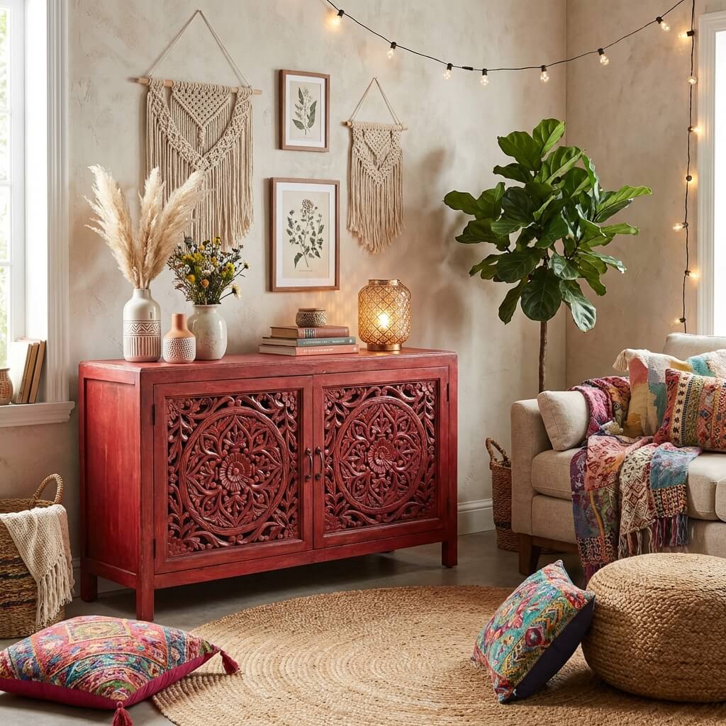 Accueil > Boutique > Décoration > Meubles et décorations en bois > Buffet Mandala Rouge