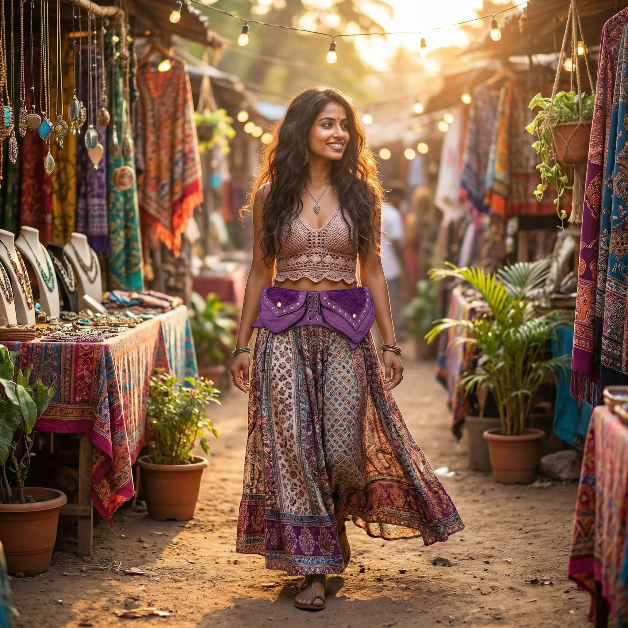 Ceinture sacoche avec dentelle en coton.