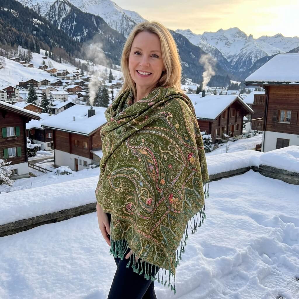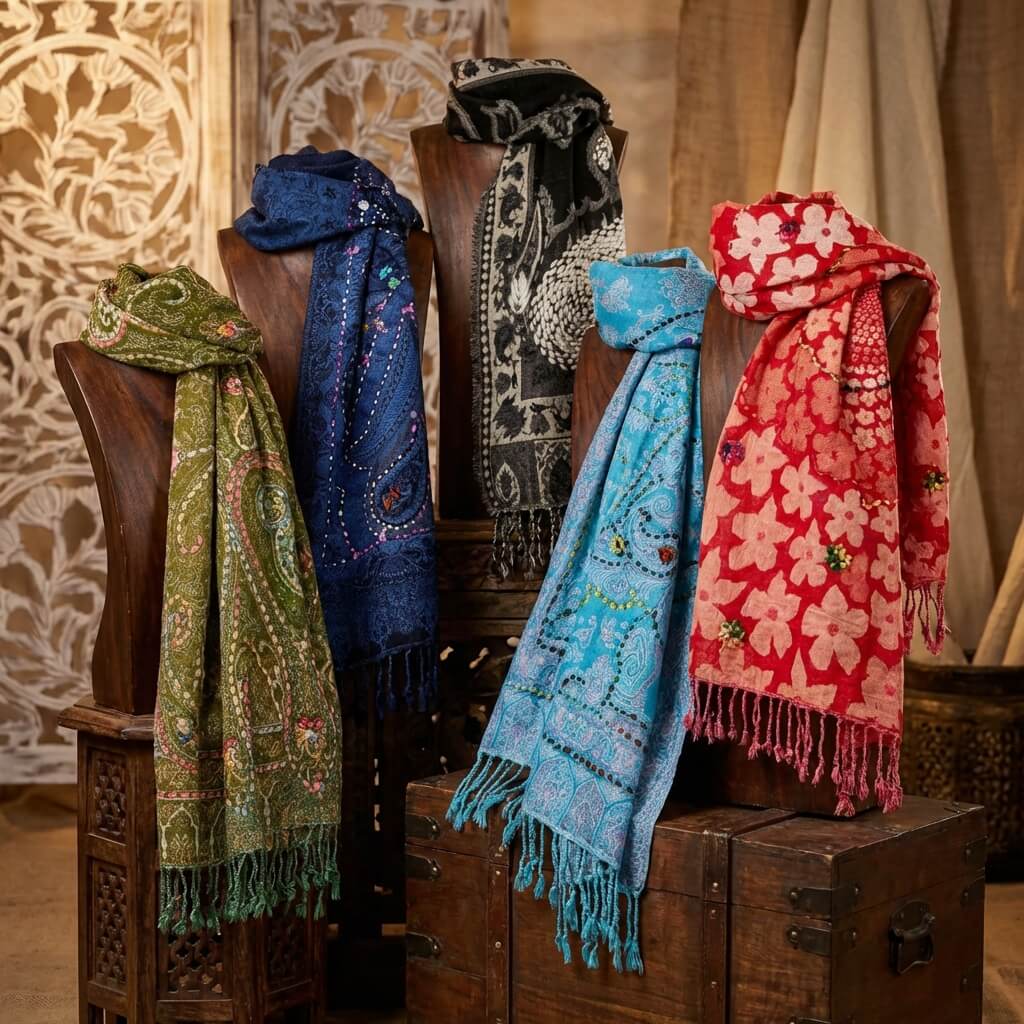 - Finition artisanale : chaque châle est tissé et brodé à la main