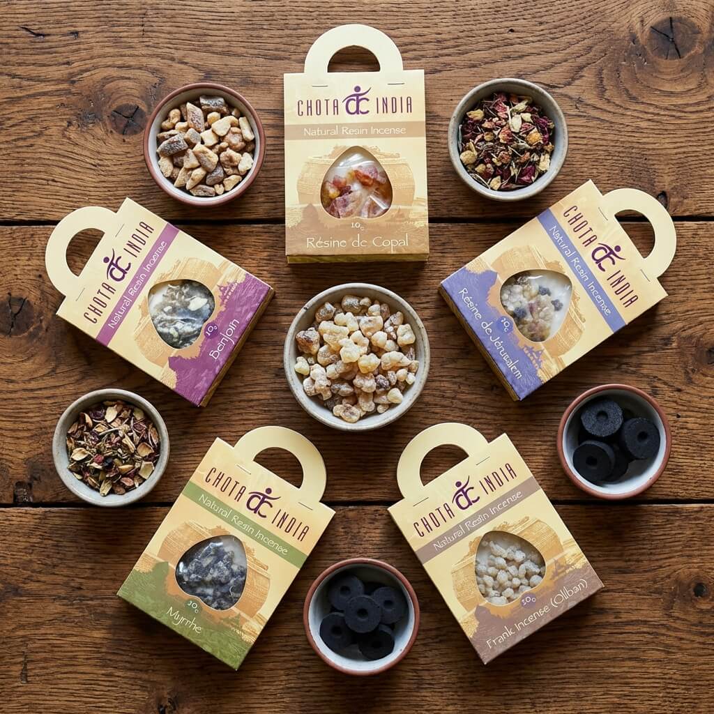 Ces résines naturelles, récoltées à partir de différentes plantes et arbres sacrés, dégagent des parfums puissants et profonds, chacun avec ses vertus spécifiques : apaisement, ancrage, purification ou élévation spirituelle.