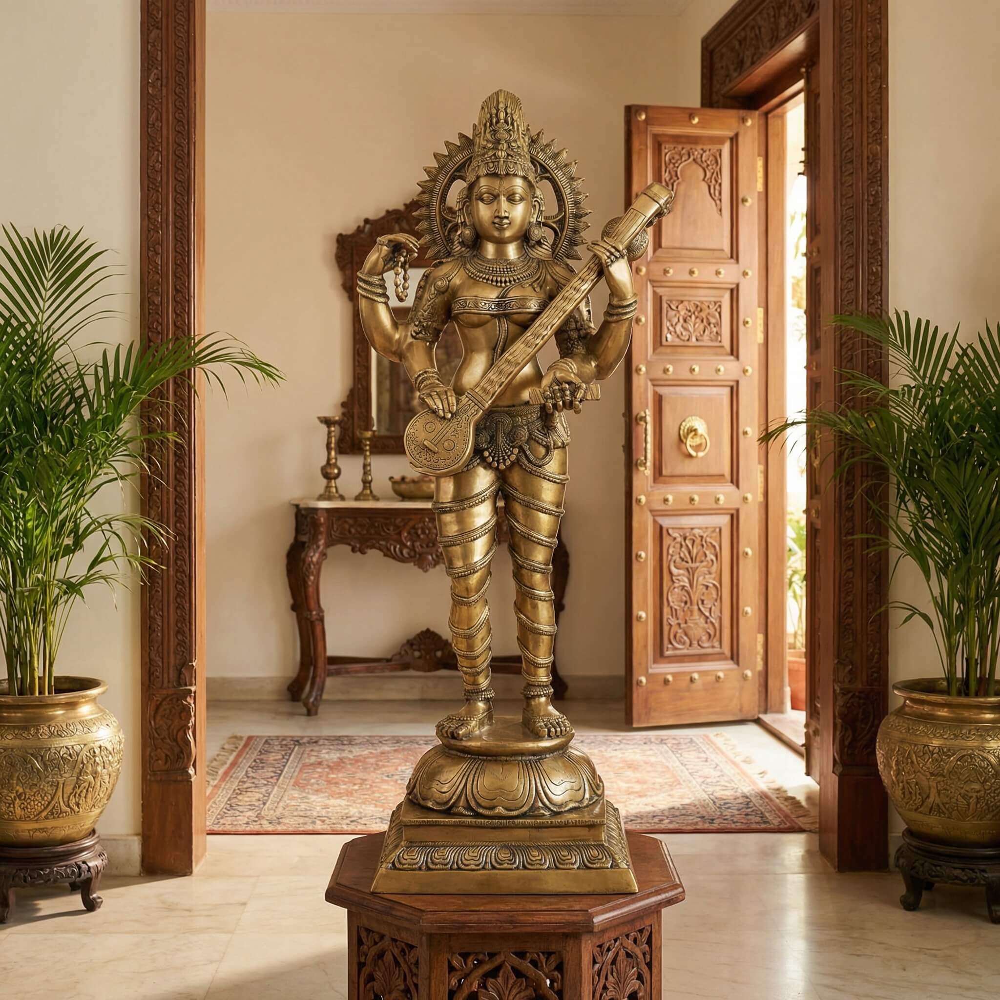 Grande Statue Sarasvati Debout en Bronze — Majesté Spirituelle & Artisanat d’Exception