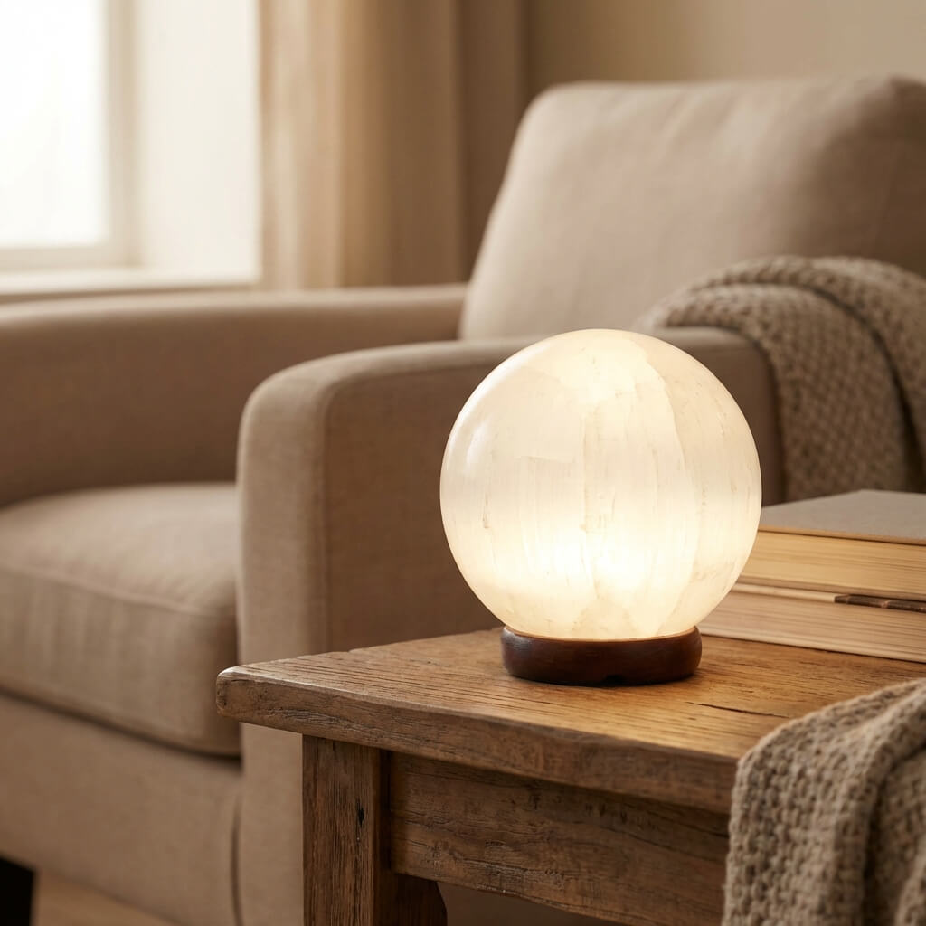 Lampe en Sélénite – Ambiance Sereine & Énergie Apaisante pour Votre Maison