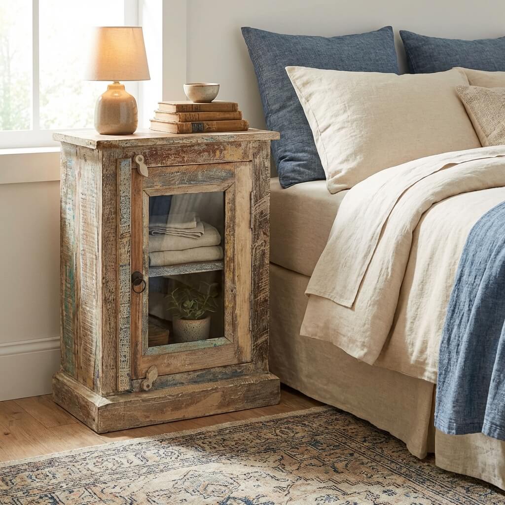 Petit meuble déco avec vitre – Pièce unique fabriquée au Rajasthan, Inde