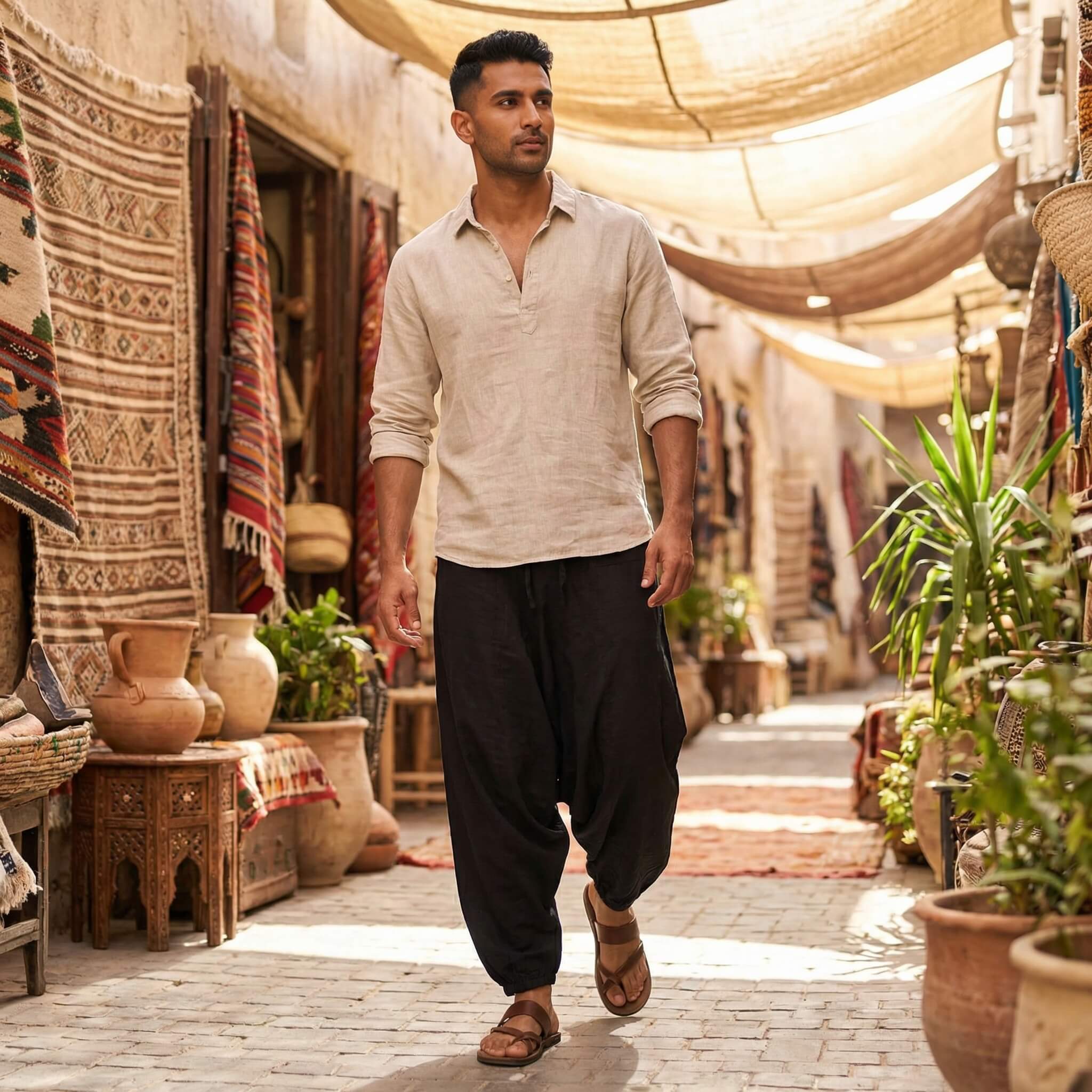 Associez-le à un t-shirt basique ou une chemise légère, et complétez le look avec des sandales ou des baskets pour un style urbain et moderne.