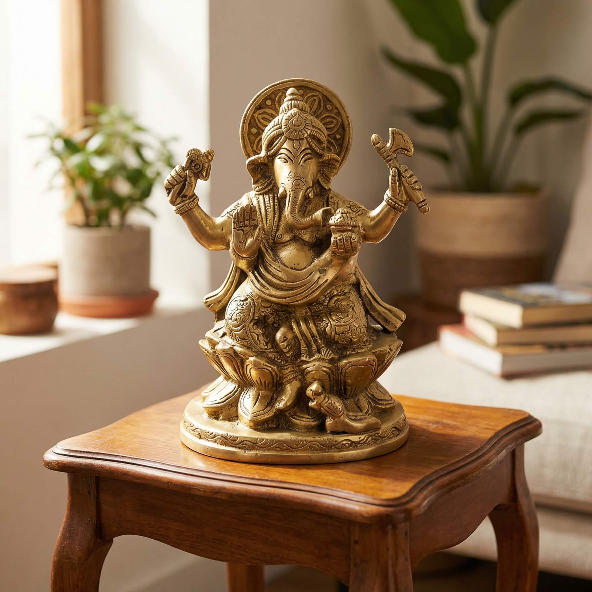 Ganesh en Bronze Doré — Symbole de Bénédiction Divine