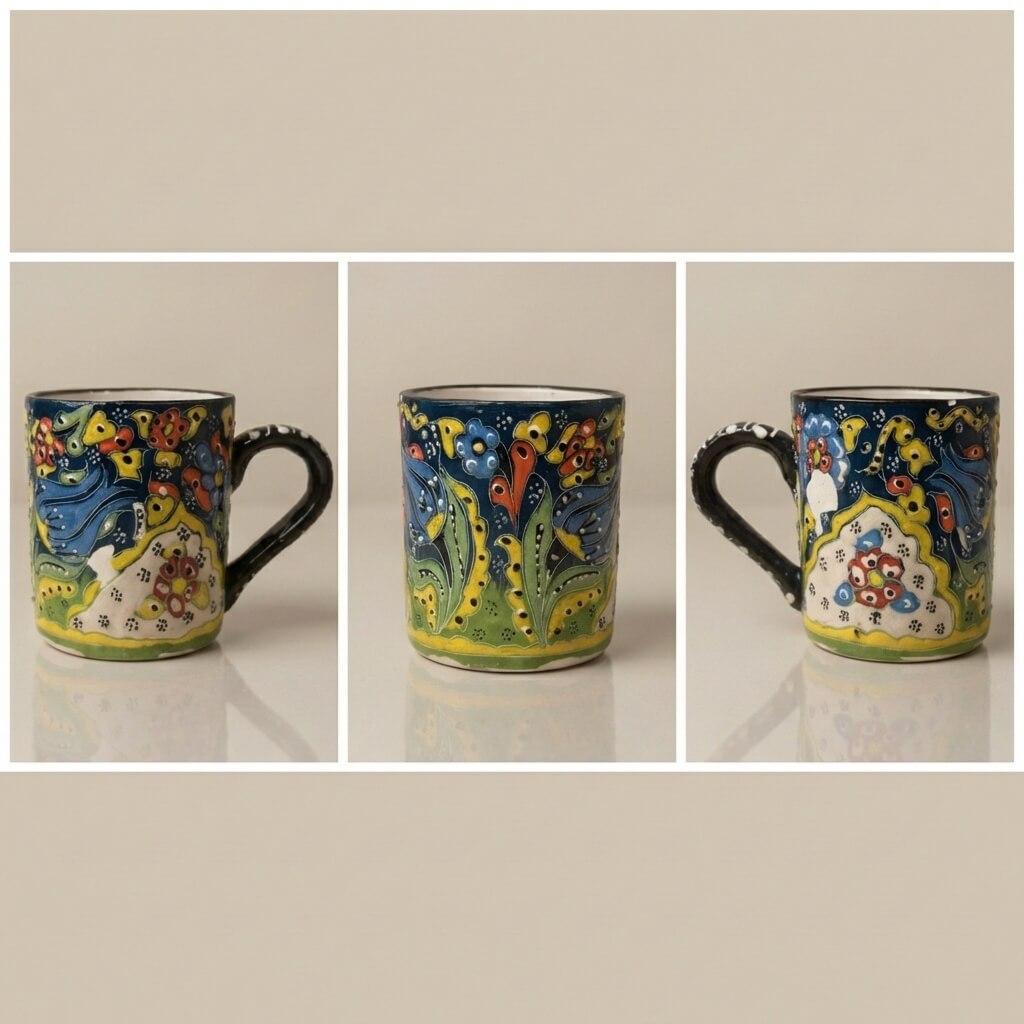 Mug Artistique «Tulipes Iznik » -Céramique Peinte à la Main