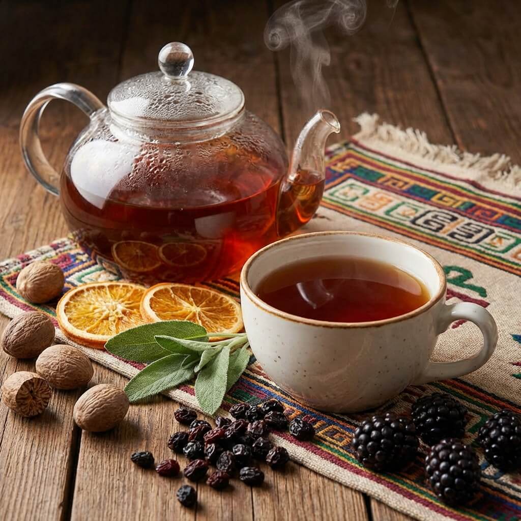 En effet, ce mélange unique allie la robustesse du thé noir à des notes surprenantes : muscade chaude, orange zestée, sauge aromatique, groseille acidulée et mûres juteuses — pour une expérience gustative à la fois profonde, équilibrée et envoûtante.
