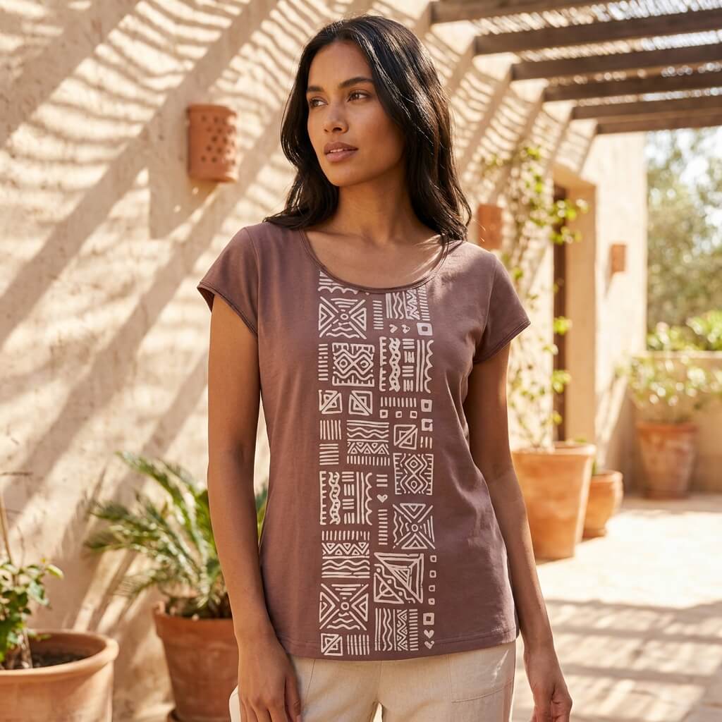 - Motif graphique : impression artisanale aux inspirations ethniques