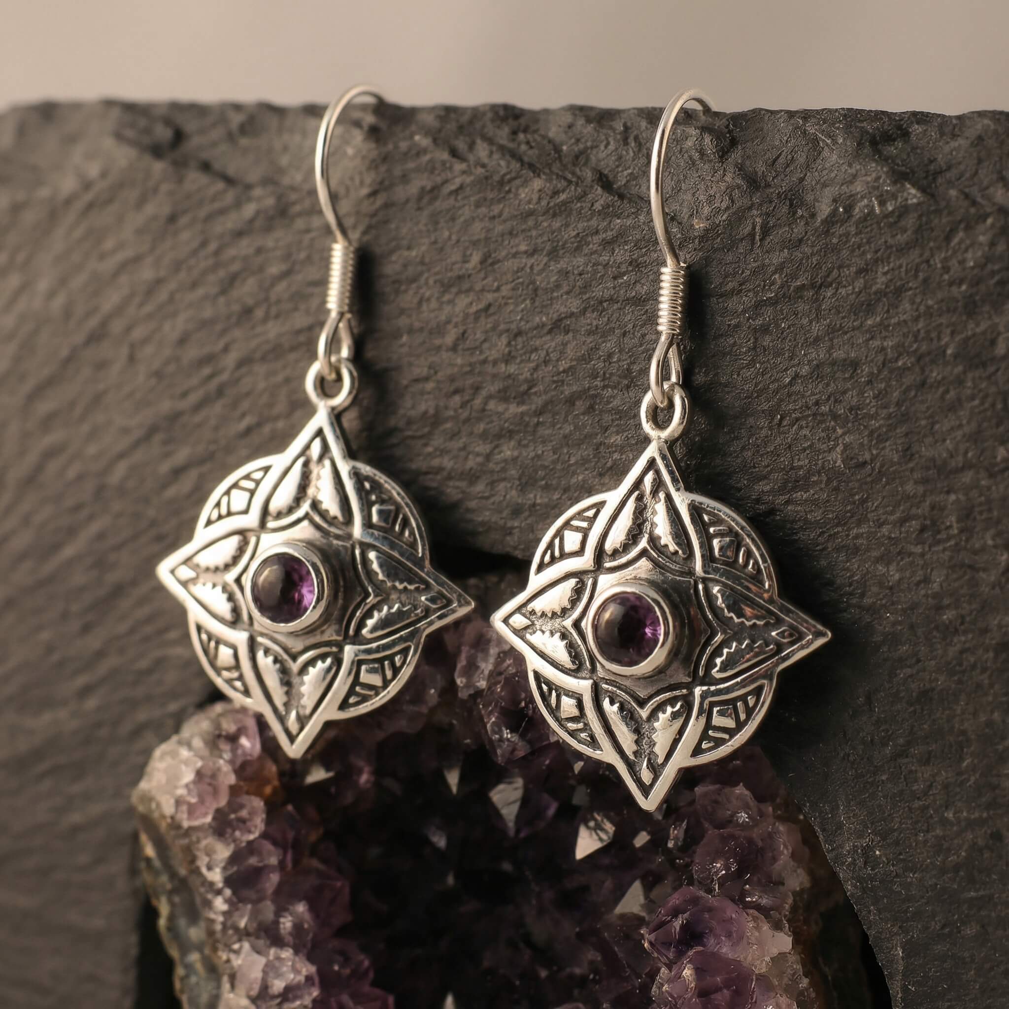 Ref: boucles oreilles améthiste ronde et croix modele2 Gaia