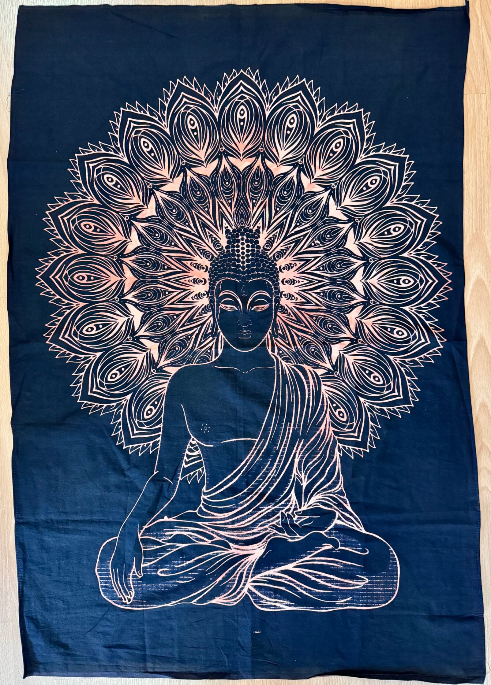 La tenture de l’éveil de Bouddha est riche en symbolisme spirituel, souvent utilisée dans les temples bouddhistes. Elle raconte l’histoire de l’éveil de Siddhartha Gautama, devenu Bouddha, et son illumination complète (Bodhi).