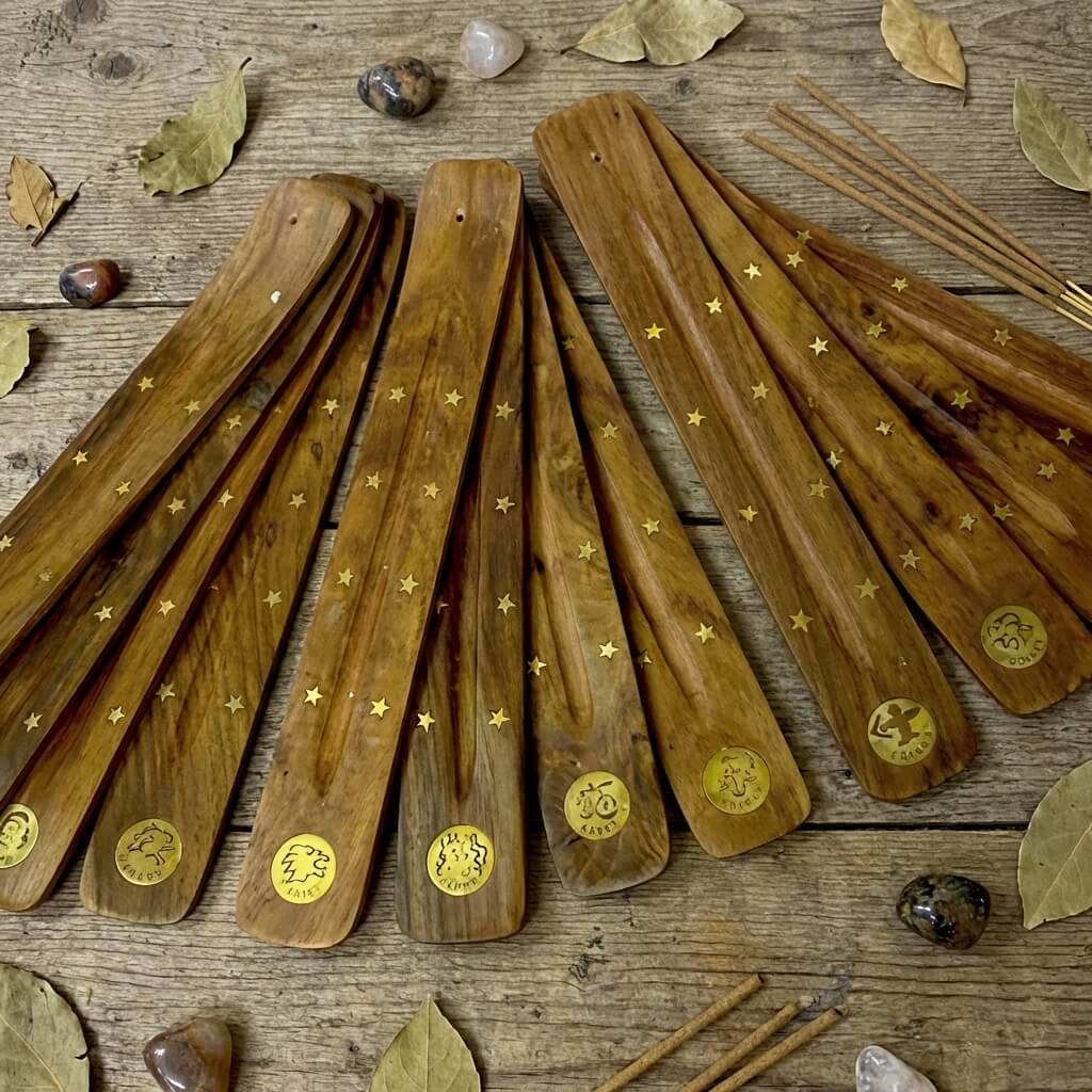 Porte-encens astrologie en bois — Objet spirituel & décoratif
